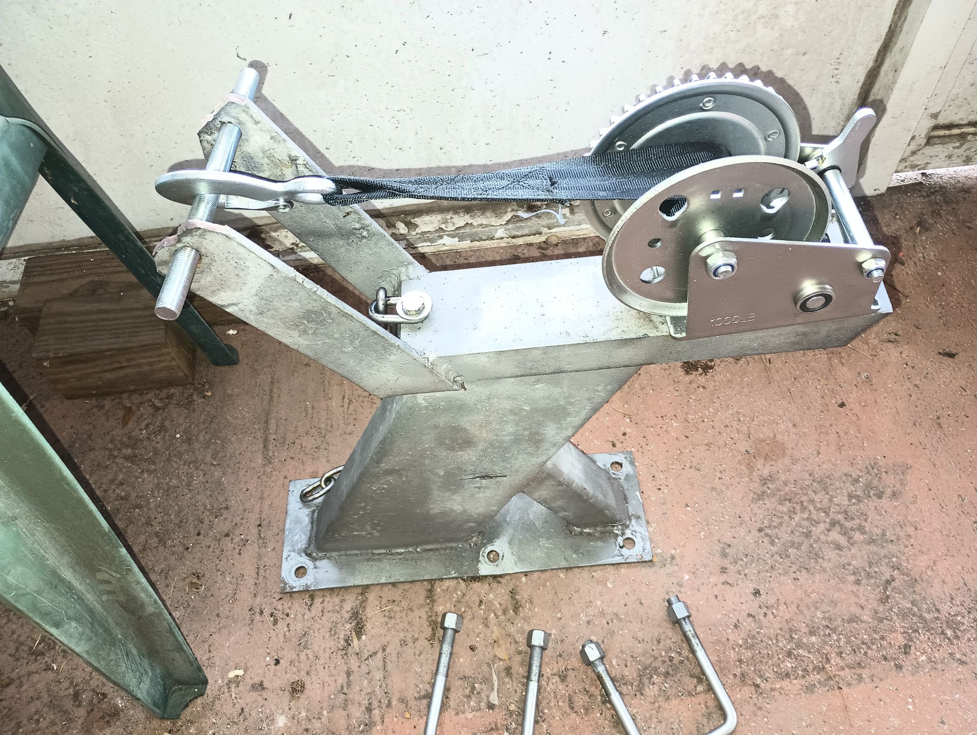 Galvanized winch stand two u-bolts and one brand new winch with brand new heavy duty nylon strap and one stainless steel safety chain