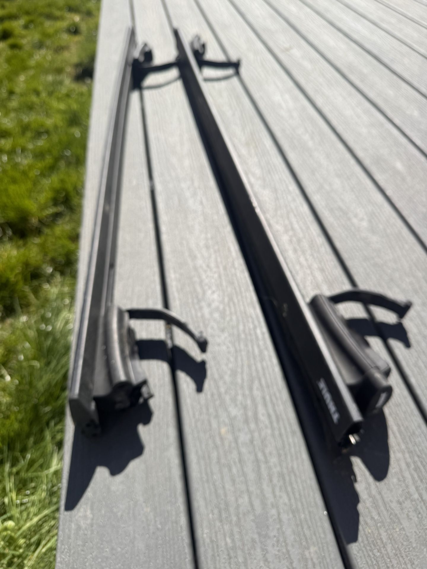 Thule roof bars with towers for roof rails. Missing a couple caps but fully functional