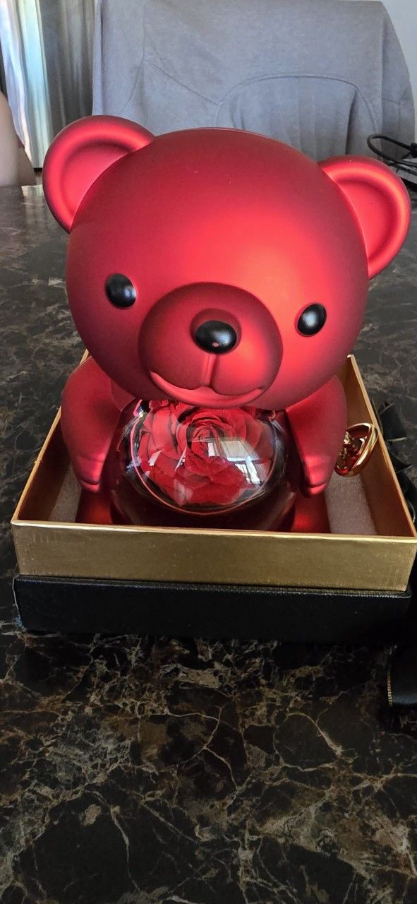 Rose Bear Jewelry Box, Preserved Rose Teddy Bear