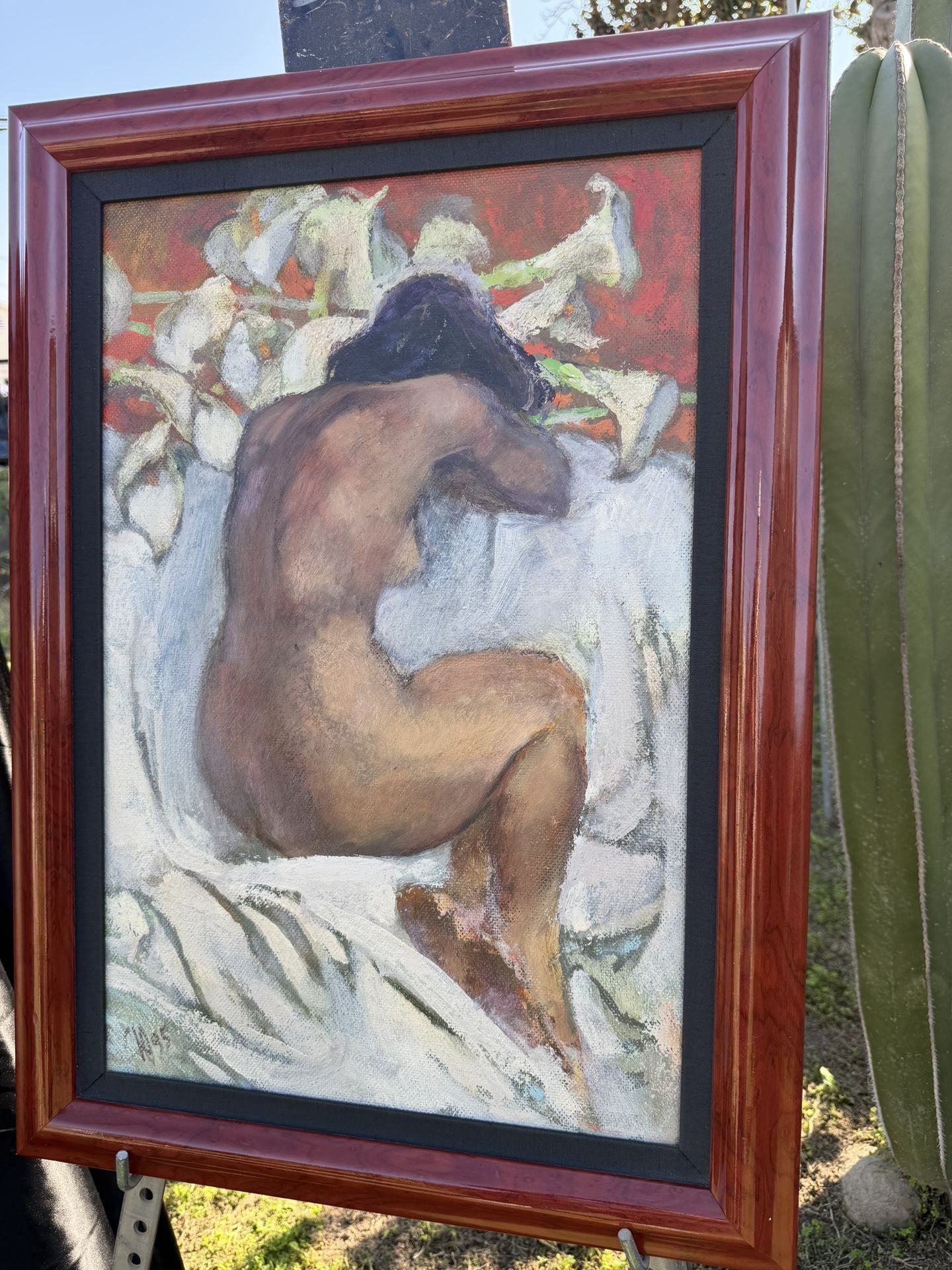 Beautiful Nude Woman With Cala Lilies" Oil Painting. Signed By The Artist. Approx. 20.5” Wide by 29” Tall. Good Condition. R-Blue