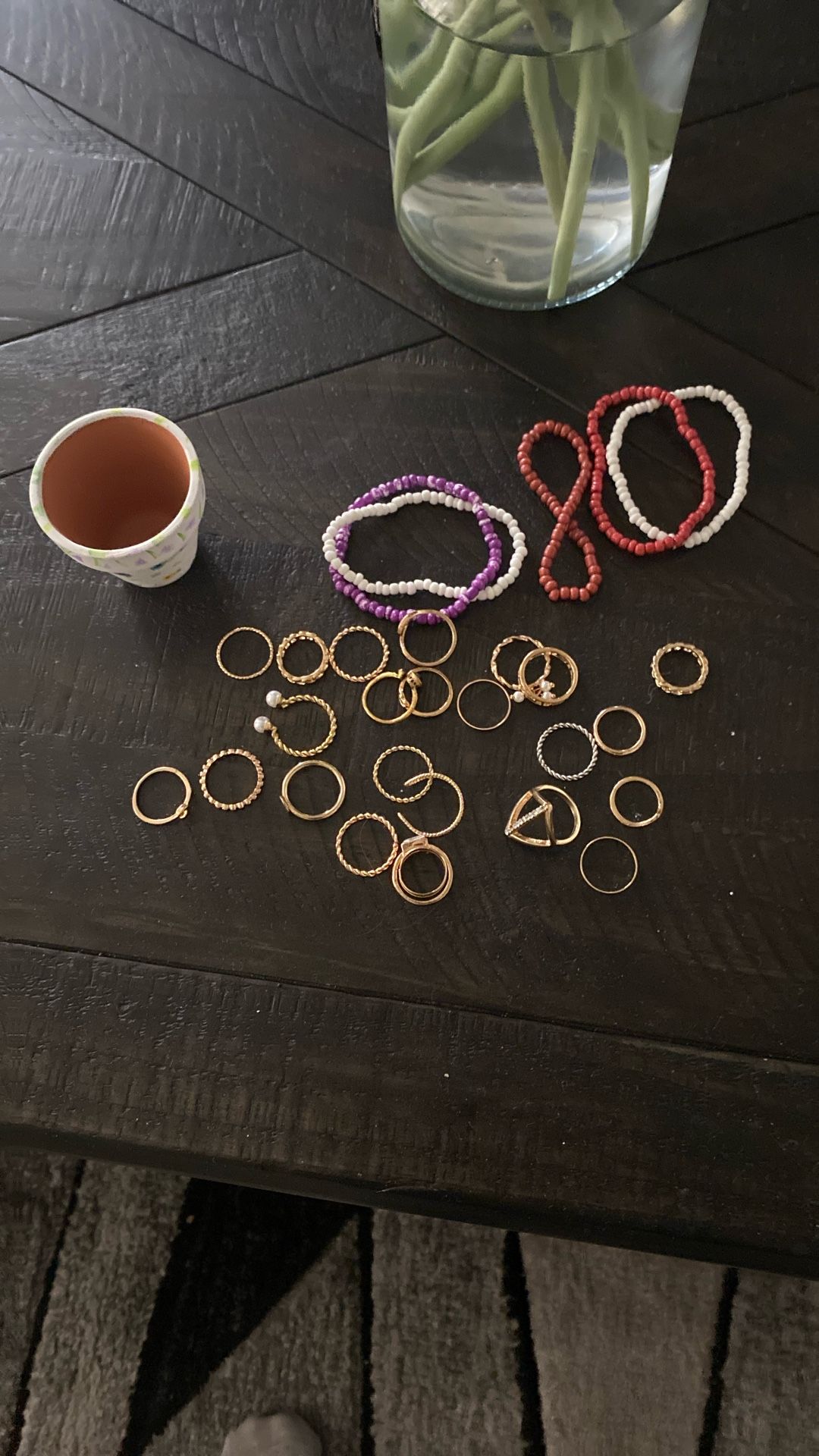 24 rings )gold color) and 3 bracelets