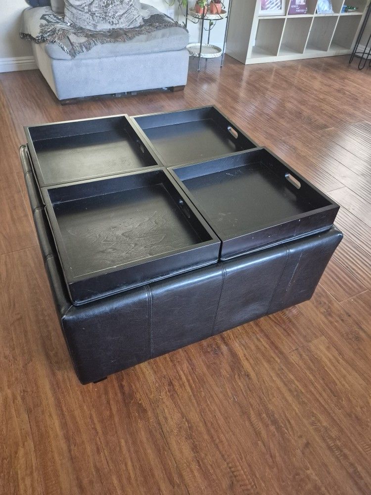 Black Leather Ottoman