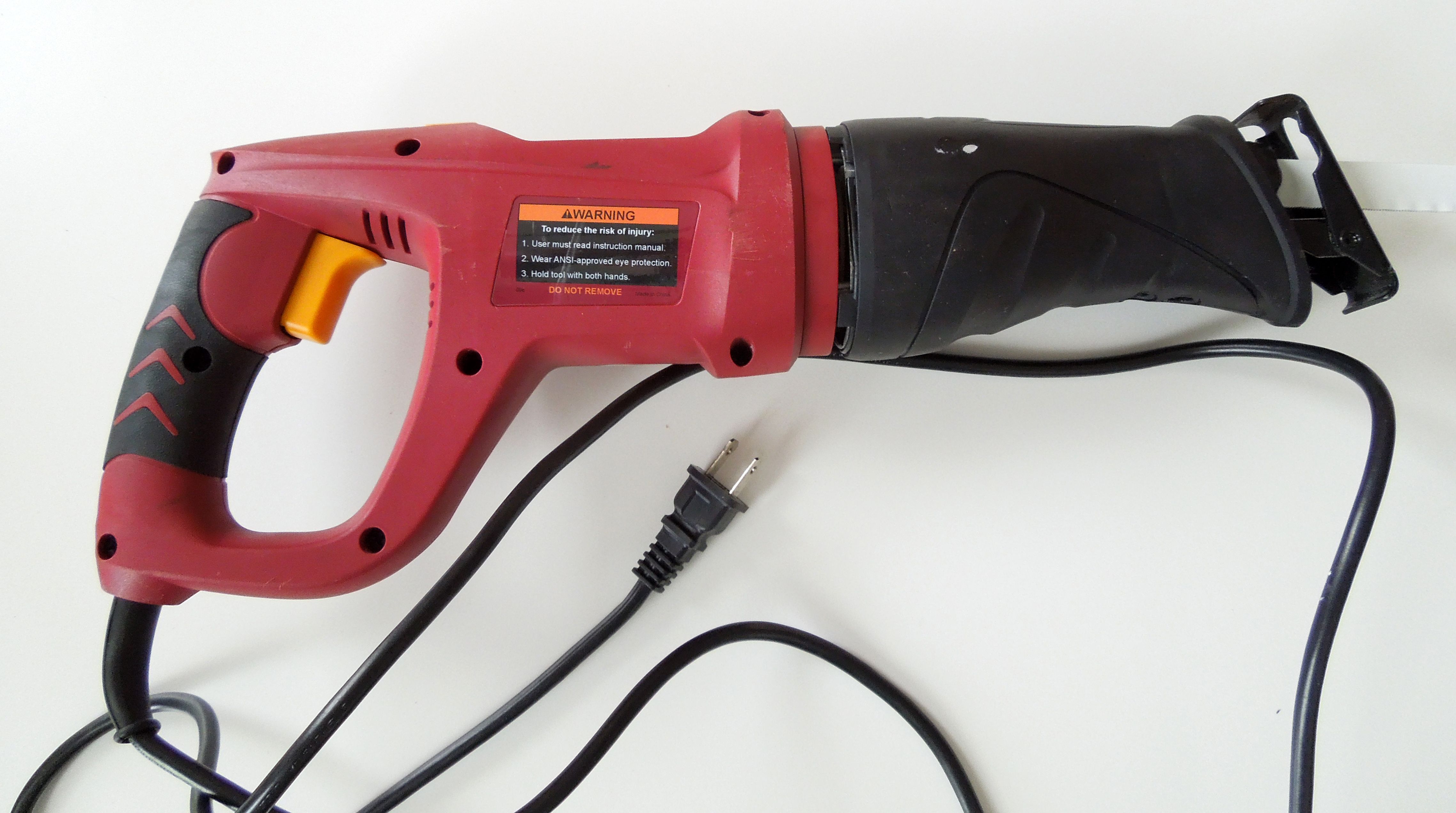 Chicago Electric Power Tools, 6 amp Reciprocating Saw with Rotating Handle. Saw used for only one project. Included original box and manuals. Included Portland Saw 12 brand new blades (2 x metal and 10 x wood blades)