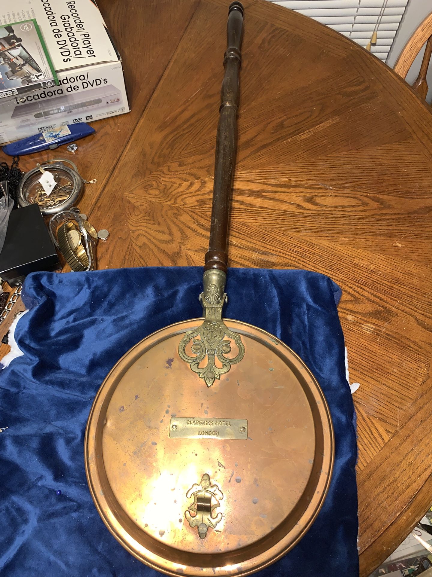 Vintage copper and wood bed warmer