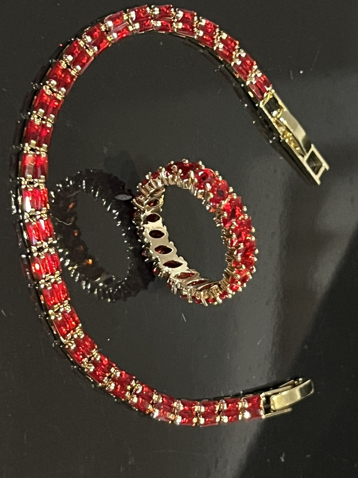 Red ring marquis stones gold plated sz 8 Red bracelet gold pkated Look real!