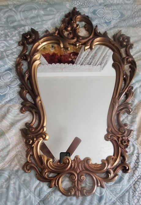 Syroco Gold Wall mirror Hollywood Regency hard plastic, heavy mirror. Measuring approximately 35" in length and 22" across, ready to be displayed.