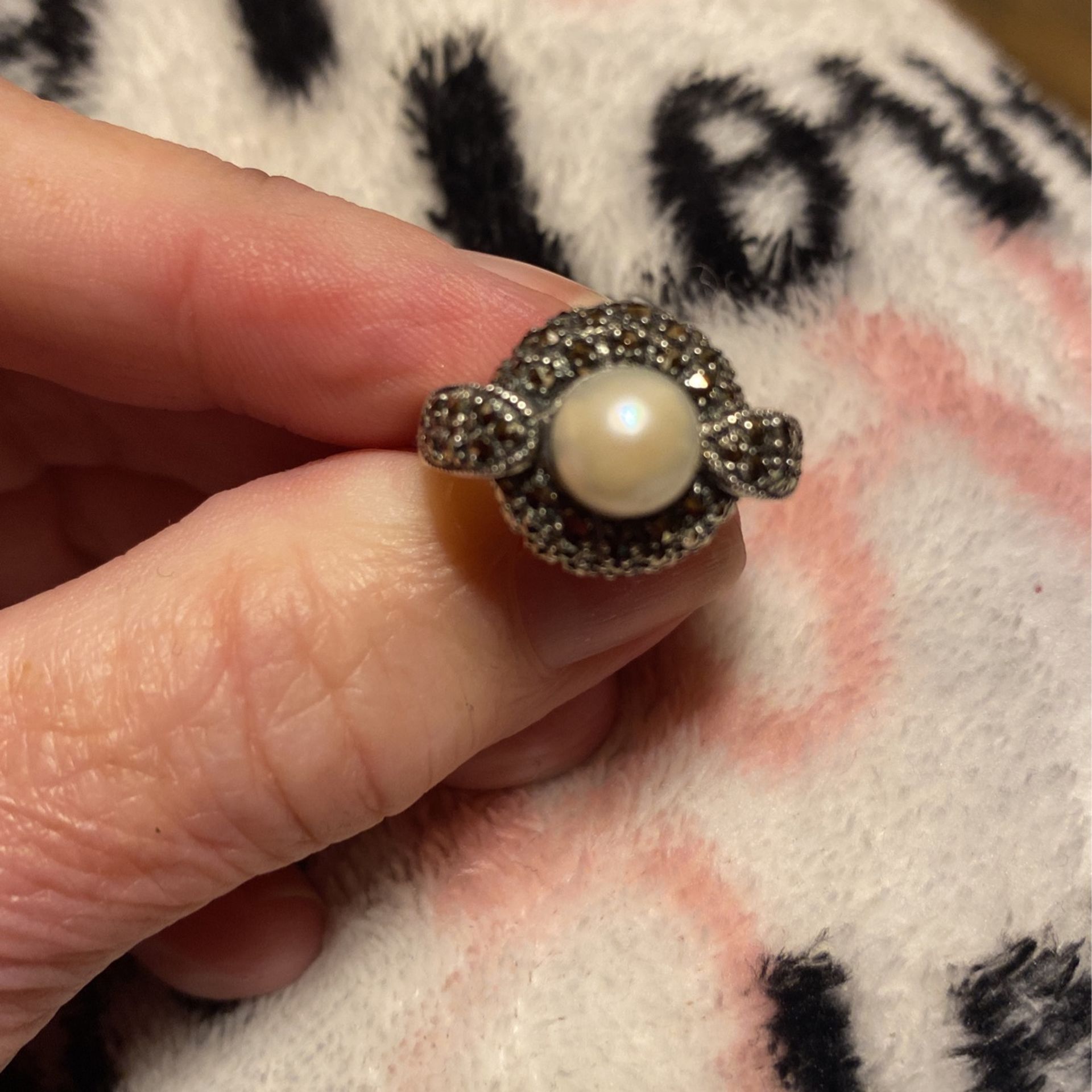 Vintage marcasite and sterling silver pearl ring size 6