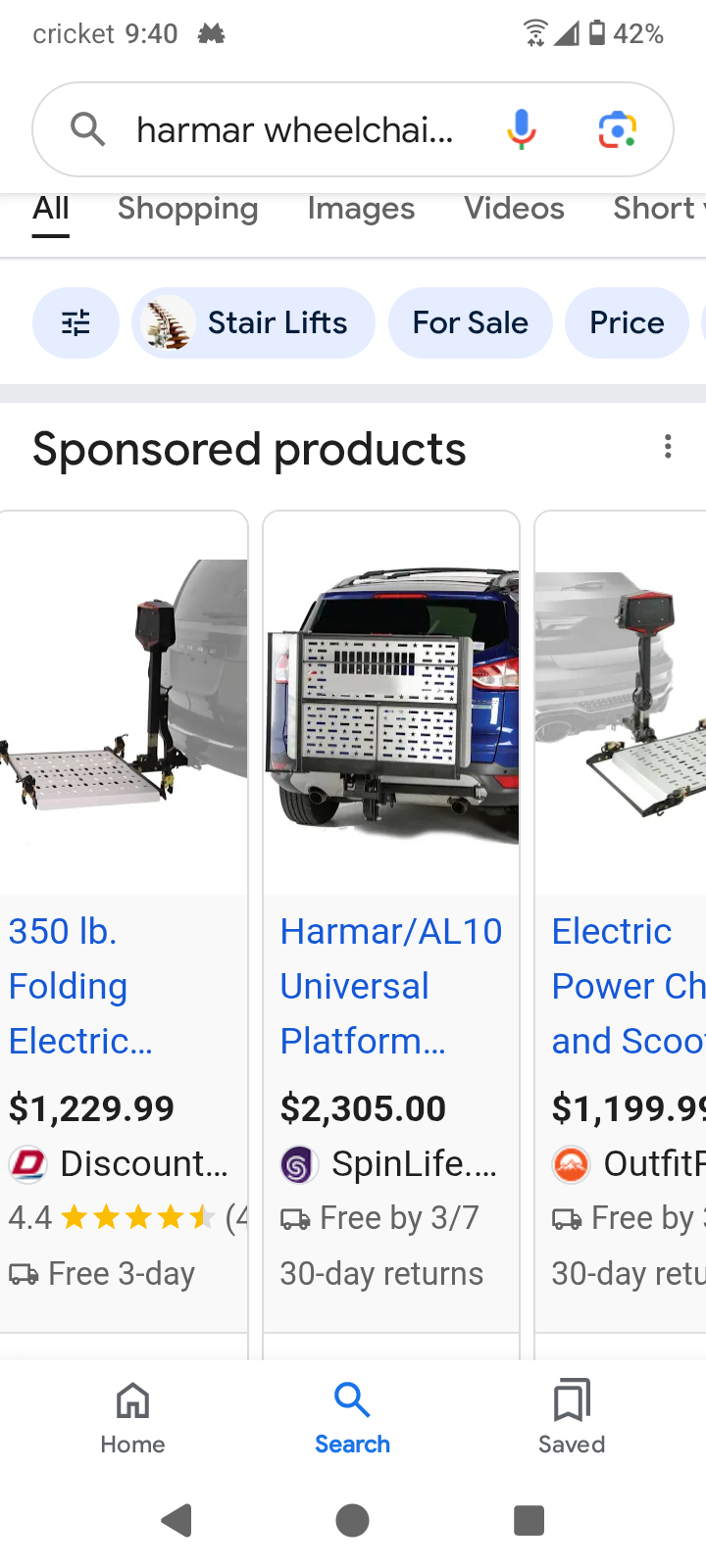 Harmar scooter/wheelchair lift Electric Hooks to Reese hitch on vehicle Hold 575lbs