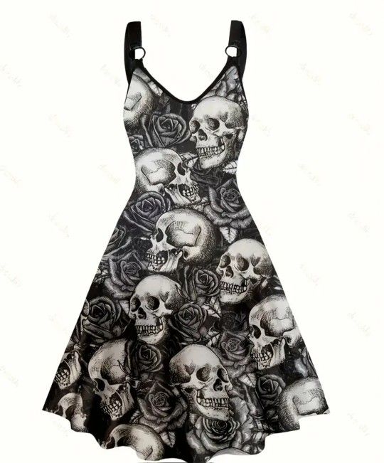 Women's Size XXL (14) Skull Print Backless Dress