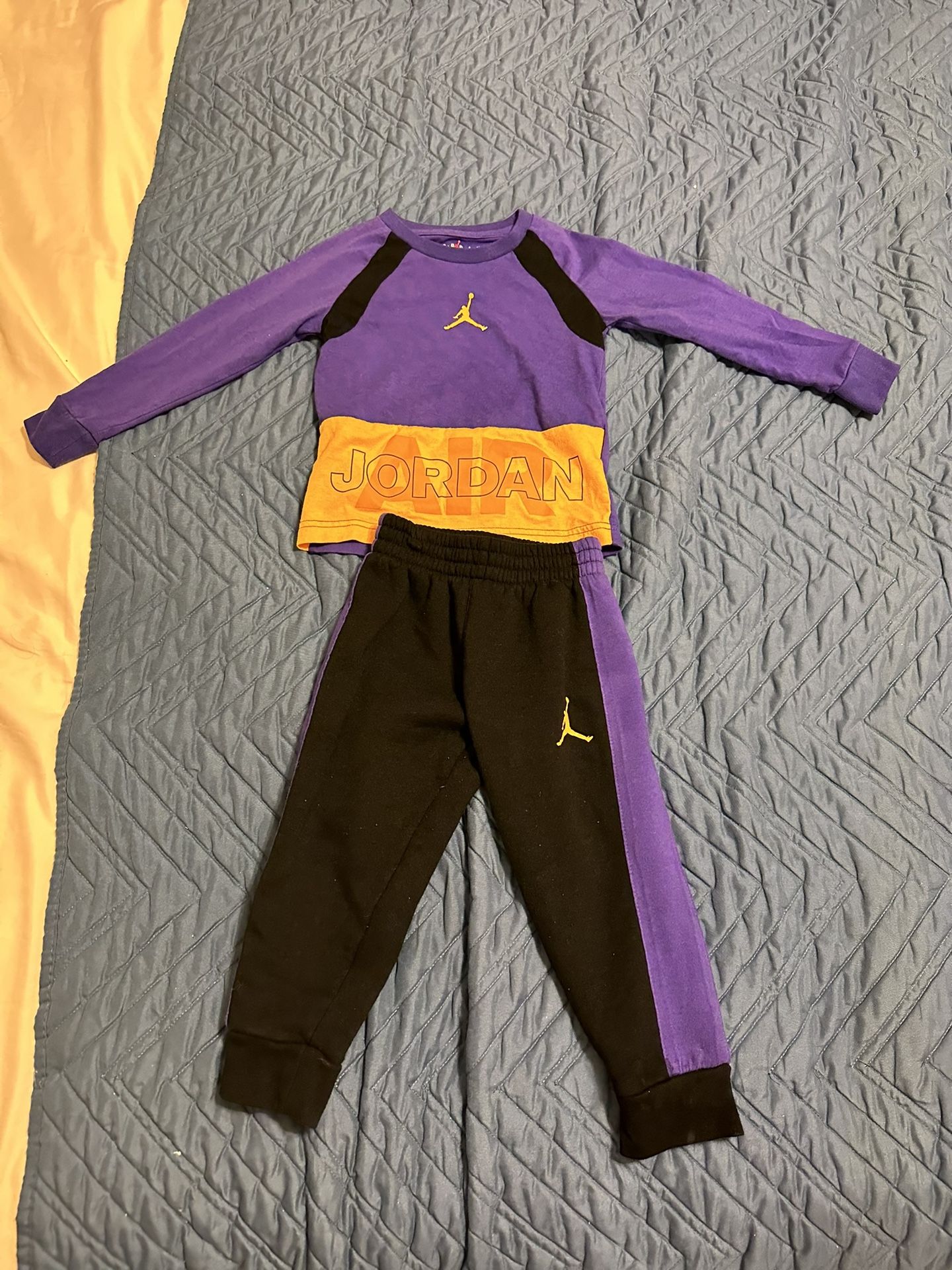 Used Purple and Black Jordan Toddler Jogger Set Sz 3T for 2-3YO Unisex Boy Girl Used only a couple of times by my toddler before growing out of it. Located in Newport Beach for Pick Up. Willing to meet in public place including Irvine, Tustin, Costa Mesa. Cash.