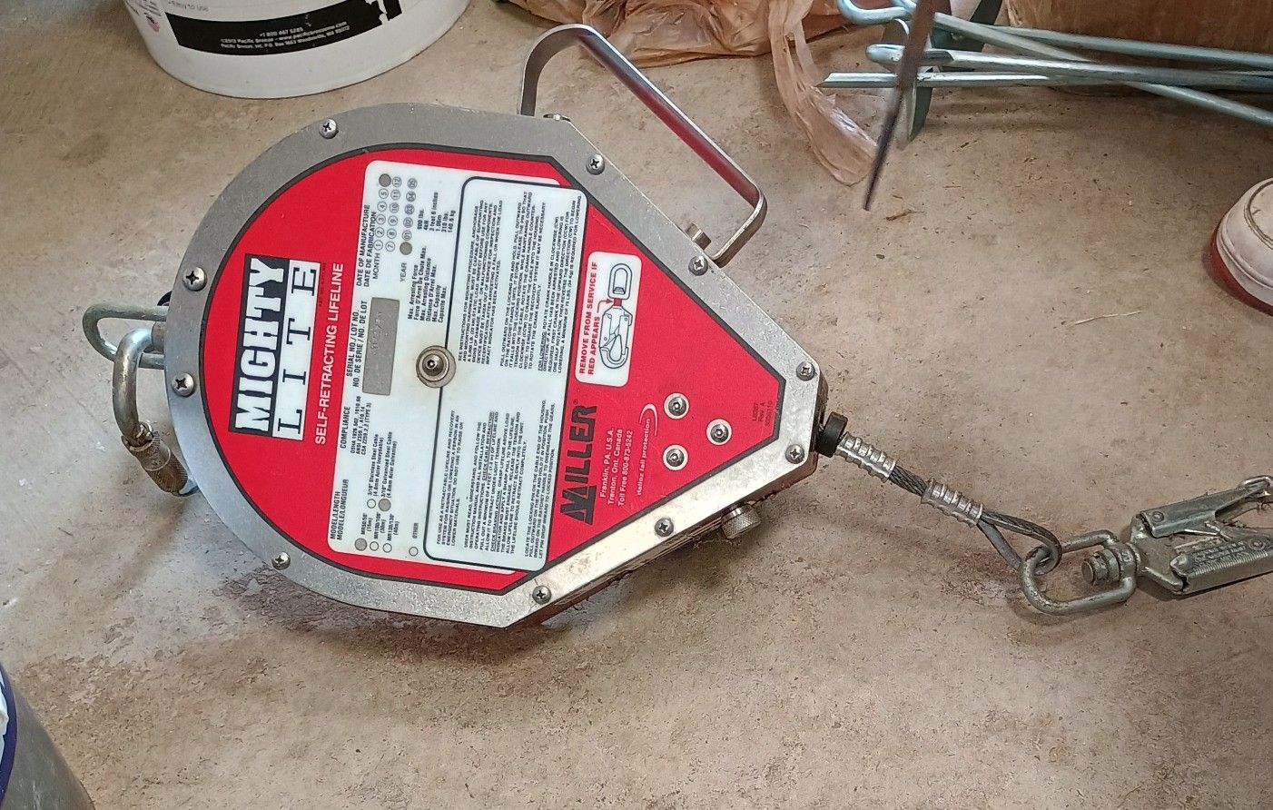 Slightly used but in very good condition. Max Arresting Force 900lbs Max Arresting Distance 3ft. 6in. Max Capacity 310lbs