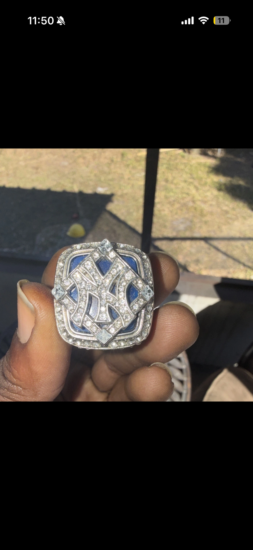 New York Yankees World Series Ring Silver Blue Crystals MLB Baseball