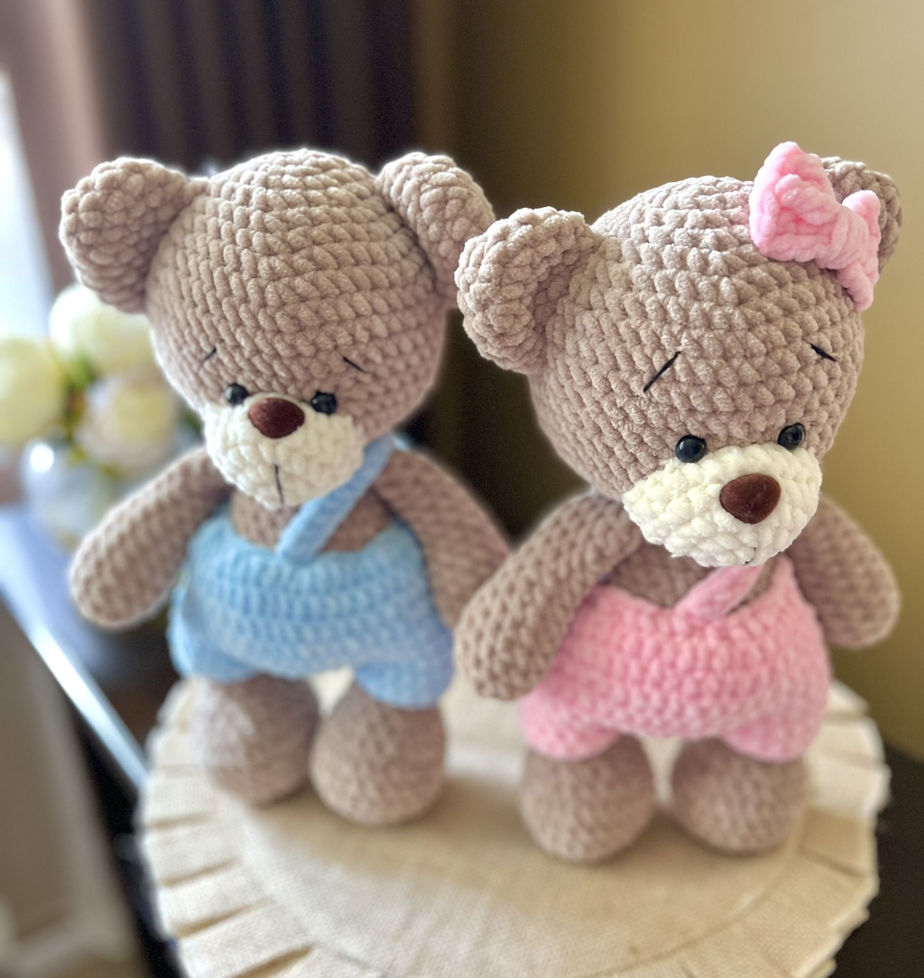 This crochet Teddy Bear is a unique handmade toy. It’s made from high-quality materials ensuring safety and durability for kids. Crocheted with love and care this toy exudes warmth and coziness promising hours of creative play and fun bonding. These toys are beautifully packaged and ready to make the loveliest gift. Size: 12.5” (approximately) Material: plush baby yarn, hypoallergenic holofiber, safety eyes and nose. *As a unique gift, this toy could be supplemented with a fingers-knitted puffy blanket.