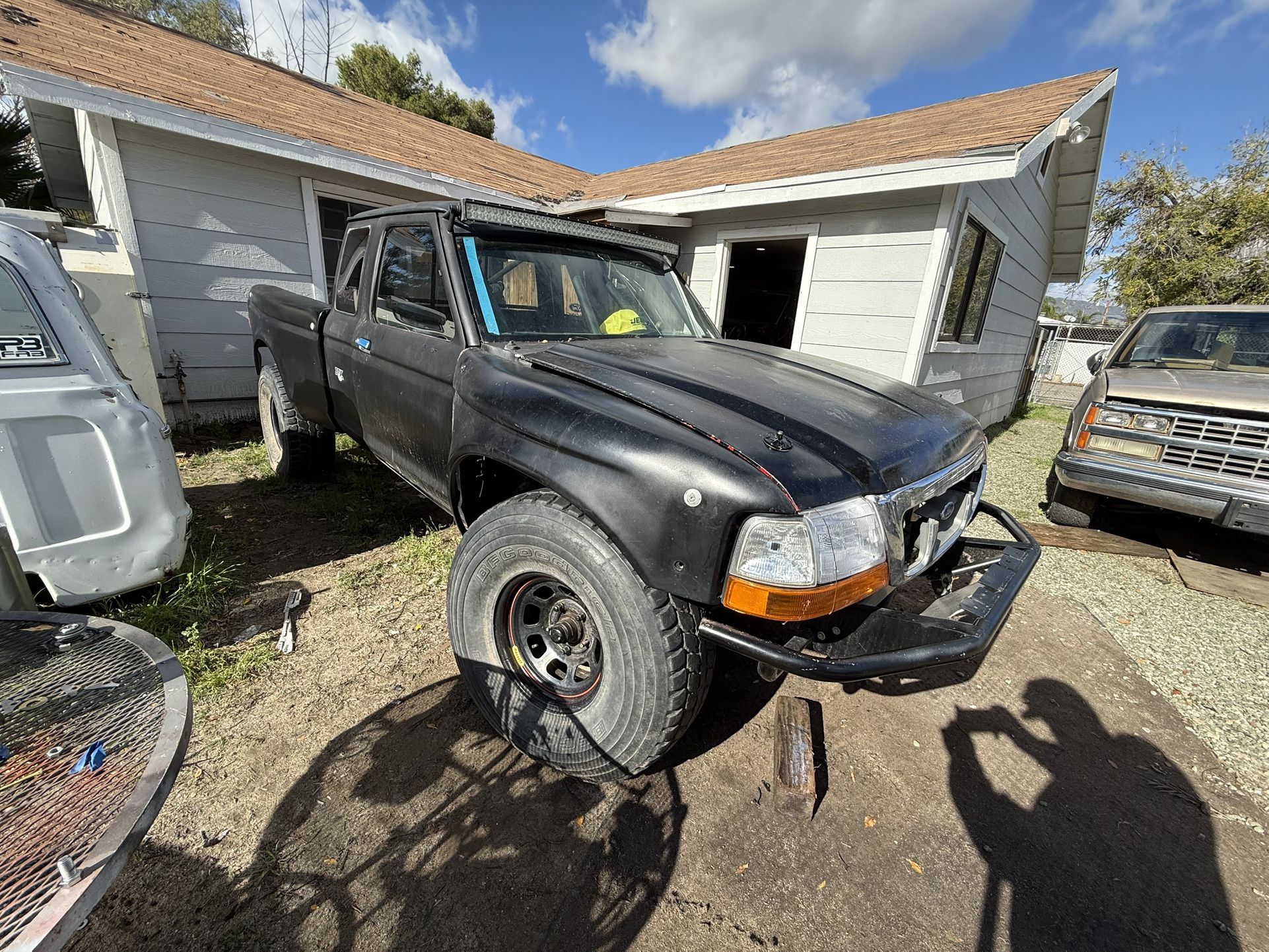 1992 Ford Ranger Pre-Runner Project Not-Running Project truck, previously a part-out. Does NOT run, but a solid foundation to finish a pre-runner build for a father and son or use for parts. Build info: 302 Ford V8 swap (low compression in cylinder 8), Transmission I believe to be C4 automatic, Rear still has leaf springs, sold front coil-overs, rear shocks, cage is Inch and 3/4, it has Fiberglass dash, Fiberglass bed sides and, Fiberglass front fenders. It is 78” wide, the VIN is still intact and can be registered for road. Clean Pink slip. Sold as-is, Open to trades. Dirt bikes, street bikes, Harley, Dun Buggy’s, any off-road toys, also open to Welding machines preferably a Miller or Lincoln .  $1,800.00
