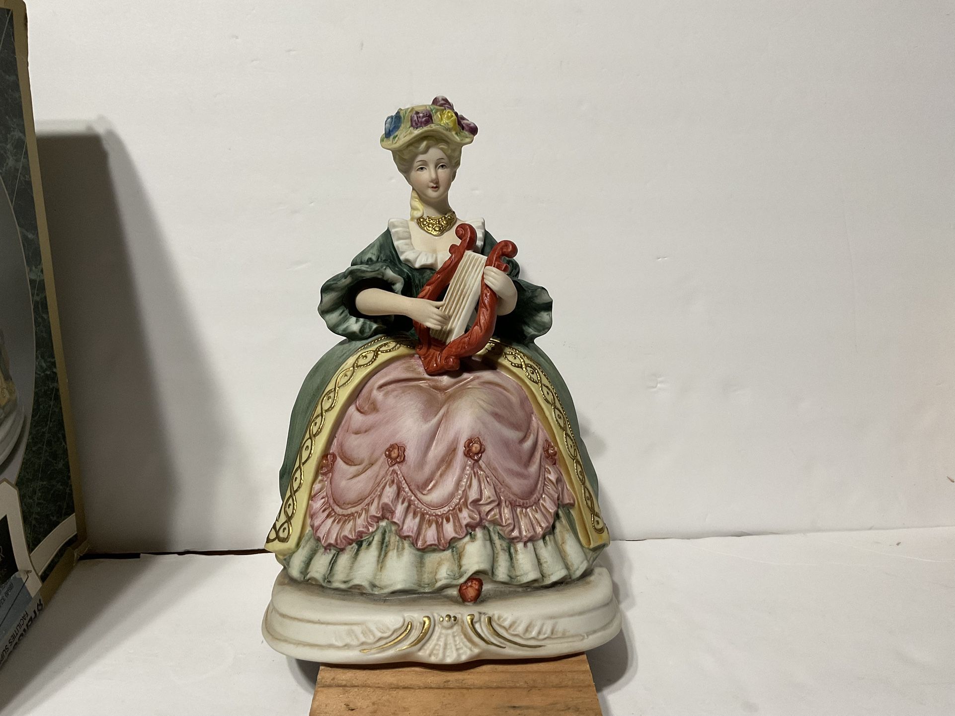 Madame Lyre Player Hand Painted Porcelain Bique Finish Figure And Her Arm Move With The Green sleeves Tune