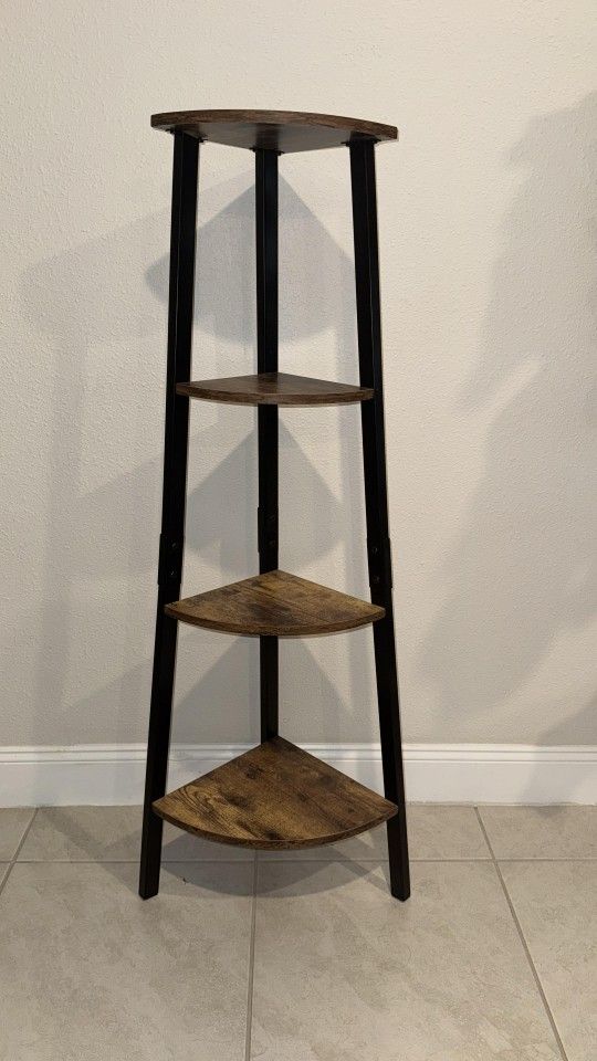 4-tier industrial style corner shelf or corner bookshelf