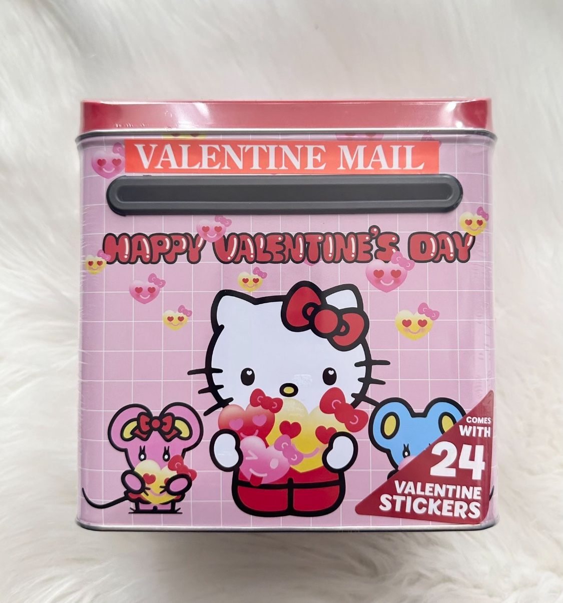 Sanrio Hello Kitty Pink Valentines Tin Tall Mail Box with Sticker 7” X 6” (NEW)