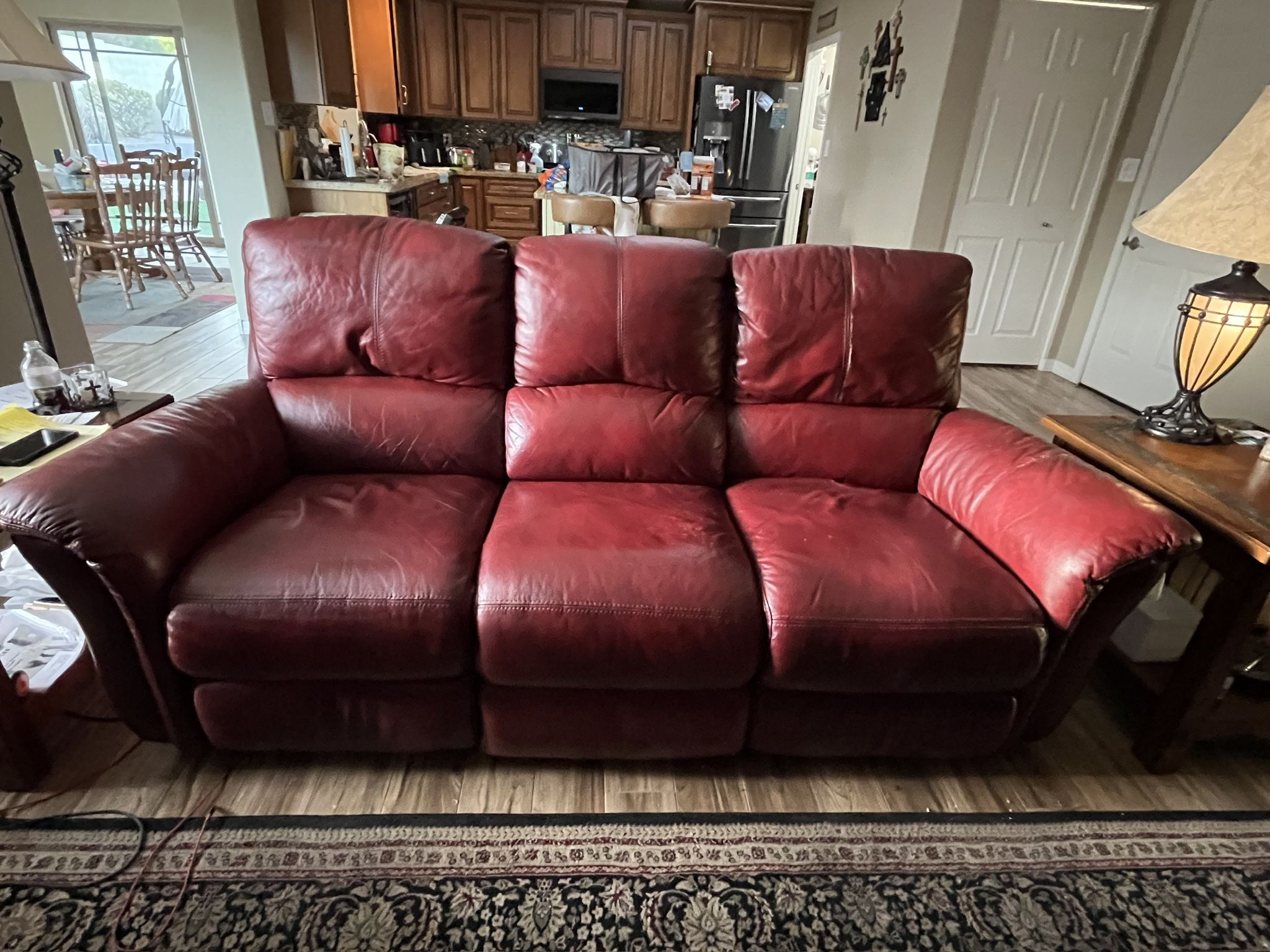 Super comfy sofa, heavy, electric reclining on both ends. Motor for reclining in perfect condition. Sofa is approximately 8 yrs old & starting to show some wear on one end. Nonsmoking home & no pets. Need to move asap.