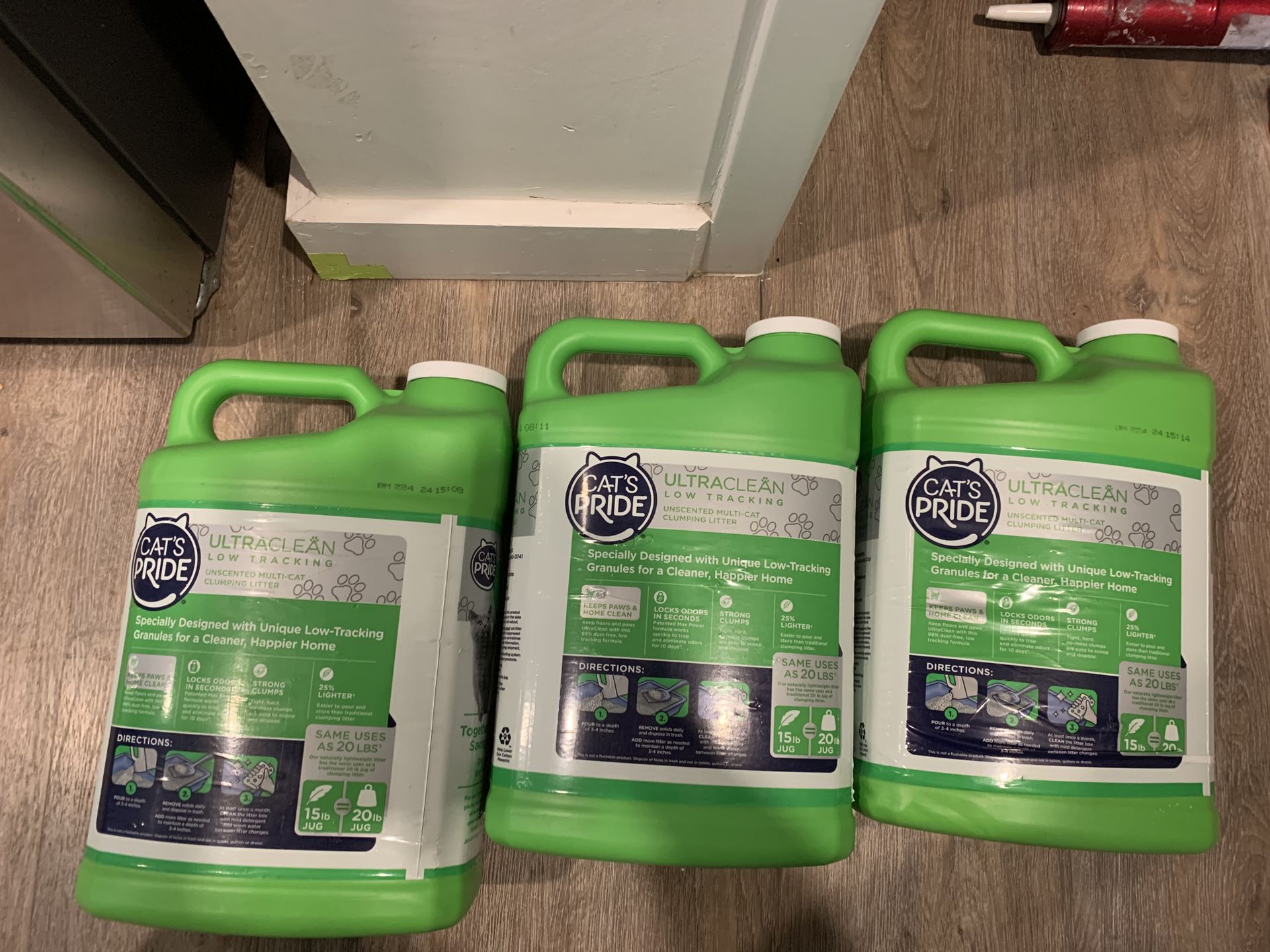Valued at $45 giving away for $30 because one was opened Three 15lb containers of litter Pick up in chelsea, NYC, cash only, no returns