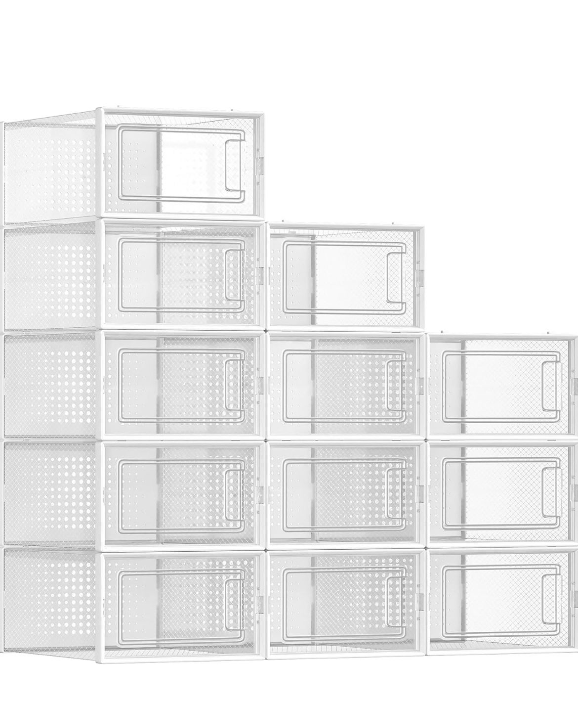 SONGMICS Shoe Storage Organizers Stackable Clear Plastic Boxes Set of 12 - White