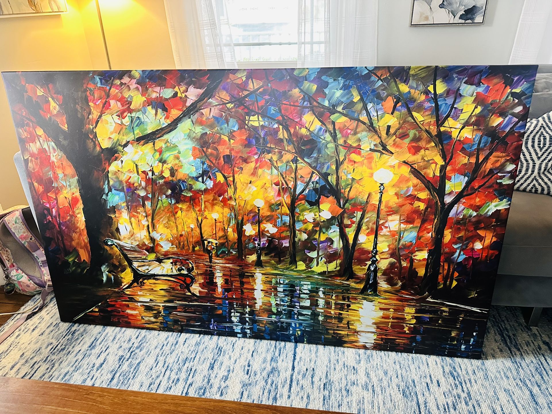 Beautiful oversized wrapped canvas painting purchased for $286 and in perfect condition. Dimensions: 36” H x 60” W x 1.5” D.