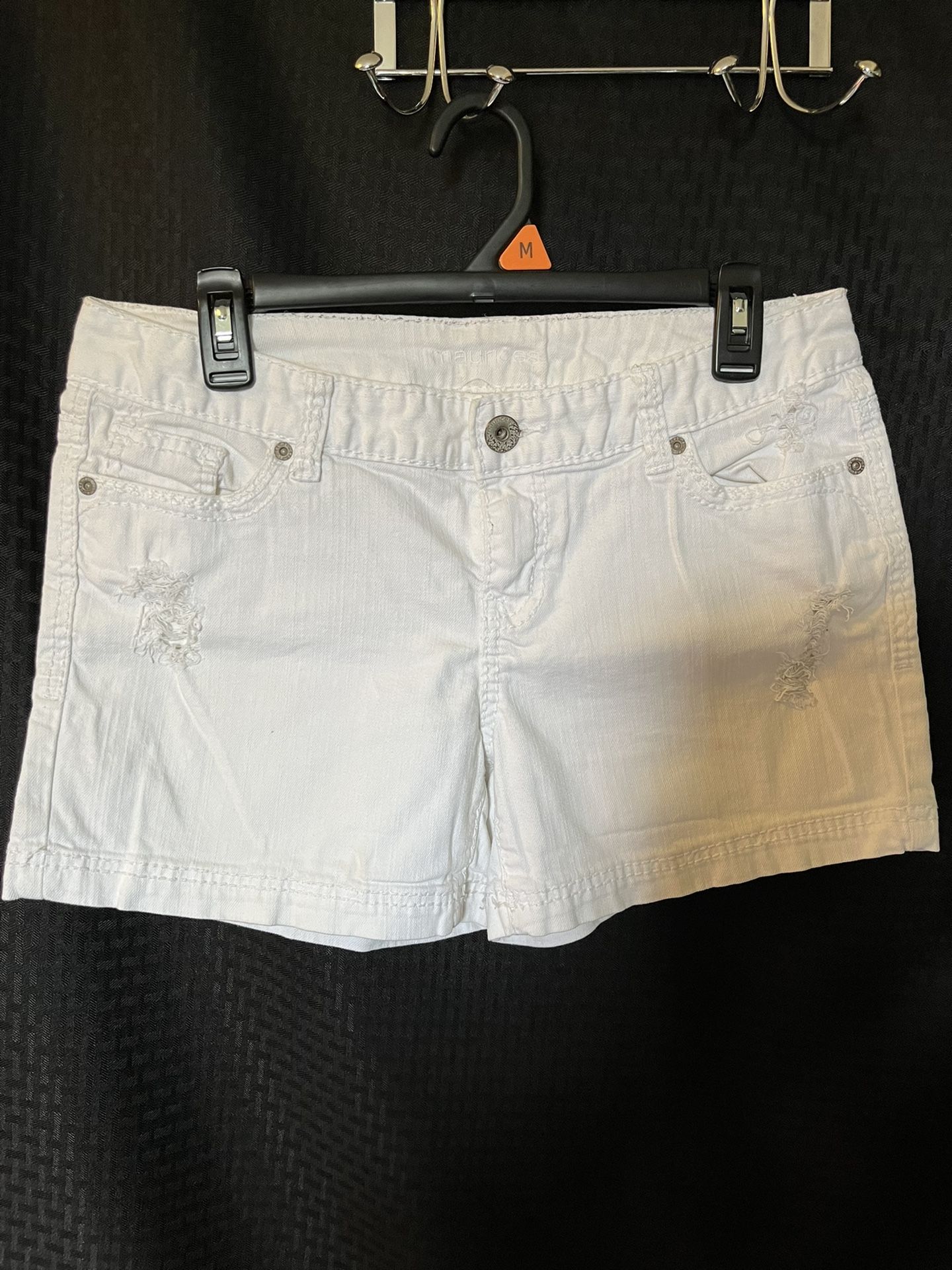 Maurices Jean Shorts Womens White Distressed Embroidered Casual. These shorts are in excellent, like new condition! Size 7/8 Approximate measurements: Inseam: 4.5” Rise: 8.5” Waist laying flat: 16” 99% Cotton, 1% Spandex