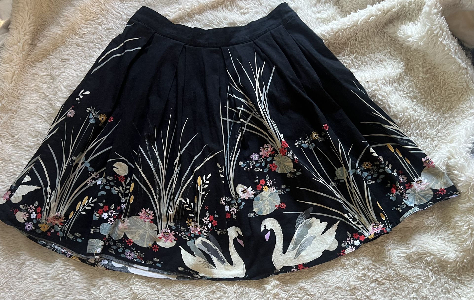 Beautiful swan skirt. Labeled XXL, but probably more a L/XL. Approximately 14 inches across the waist, 24 inches length