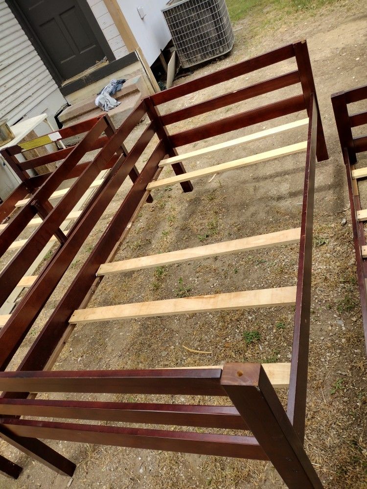3 twin beds or 3 bed bunk bed just no hardware needs wooden inserts and mattresses