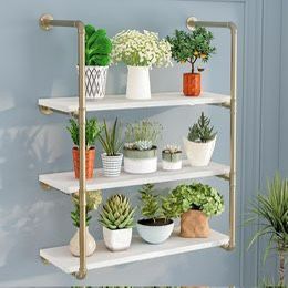 NEW Rose Gold 3-Tier Industrial Pipe & White Wood Wall Mounted Shelf Unit - Floating Shelves