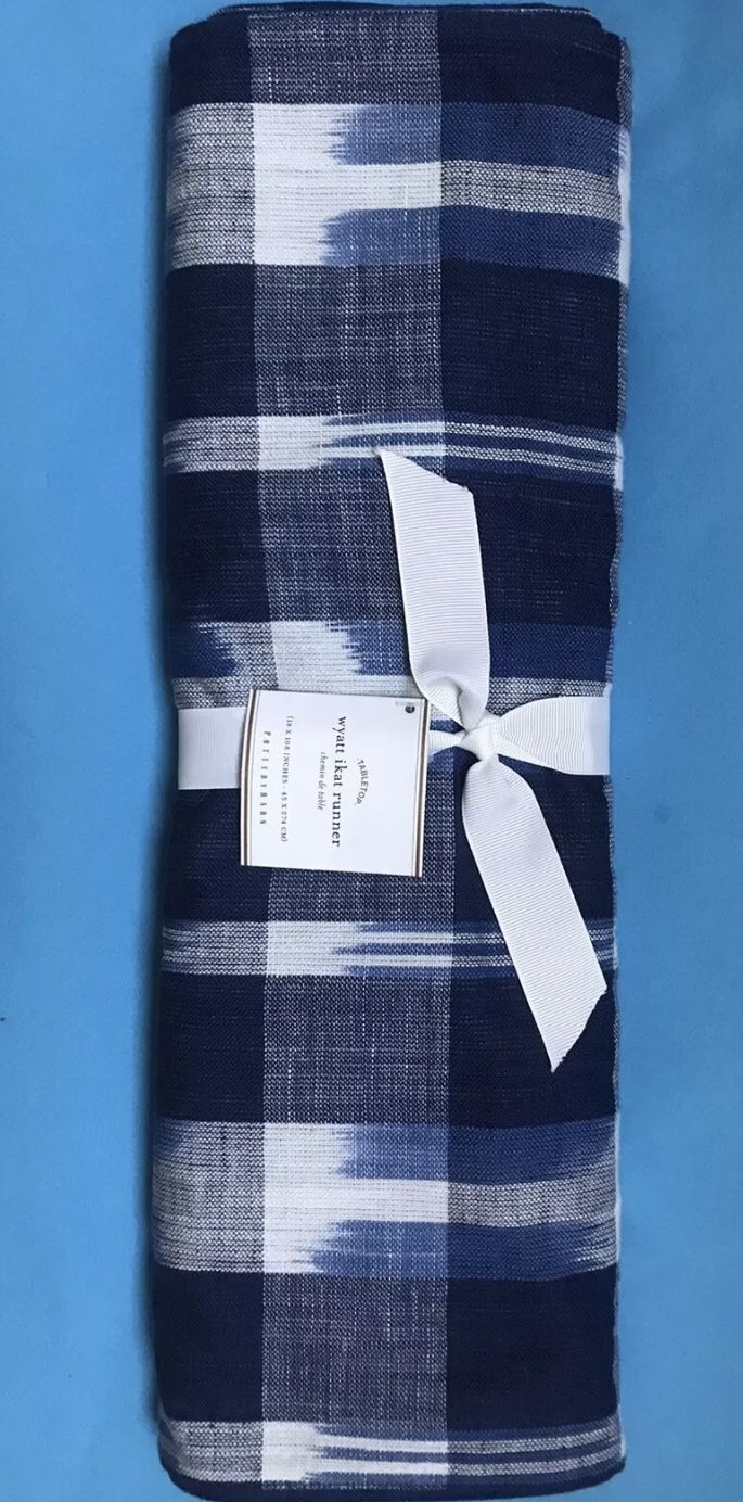 NEW!! Pottery Barn Wyatt Ikat Table Runner - Blue - 108” x 18” - NWT