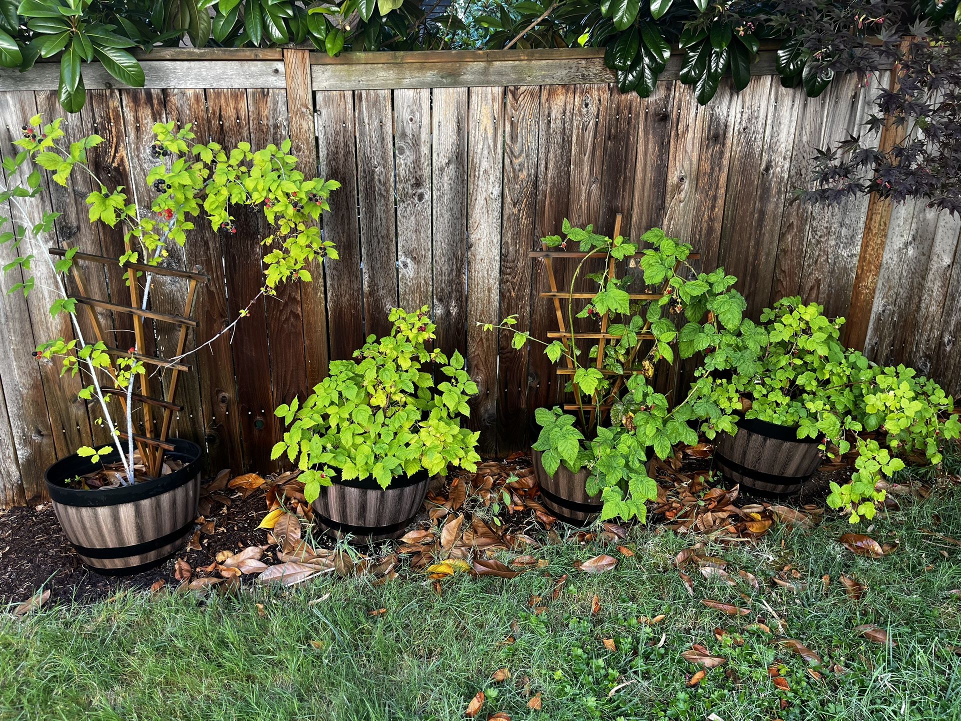 Four berry plants (blackberry, 2 raspberry, 1 hybrid blackberry/raspberry) contained in pots. These plants were bought from Flower World 3 years ago and now regularly produce berries. Not selling individually— $175 for all 4, including pots and 2 trellis. Pickup near Bongos in Phinney Ridge.