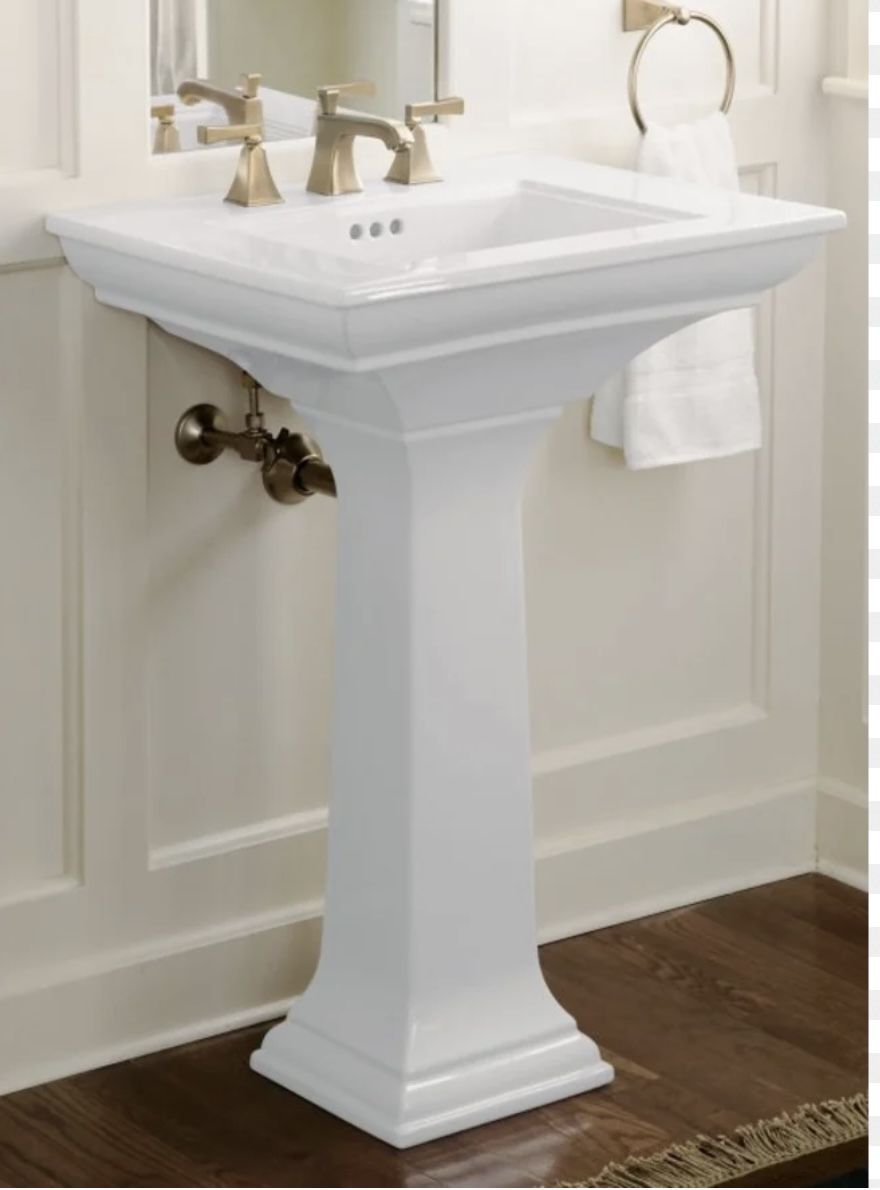 Kohler K-2239-8-0 Memoirs Classic 24" Fireclay Pedestal Bathroom Sink with 3 Holes with Pedestal White
