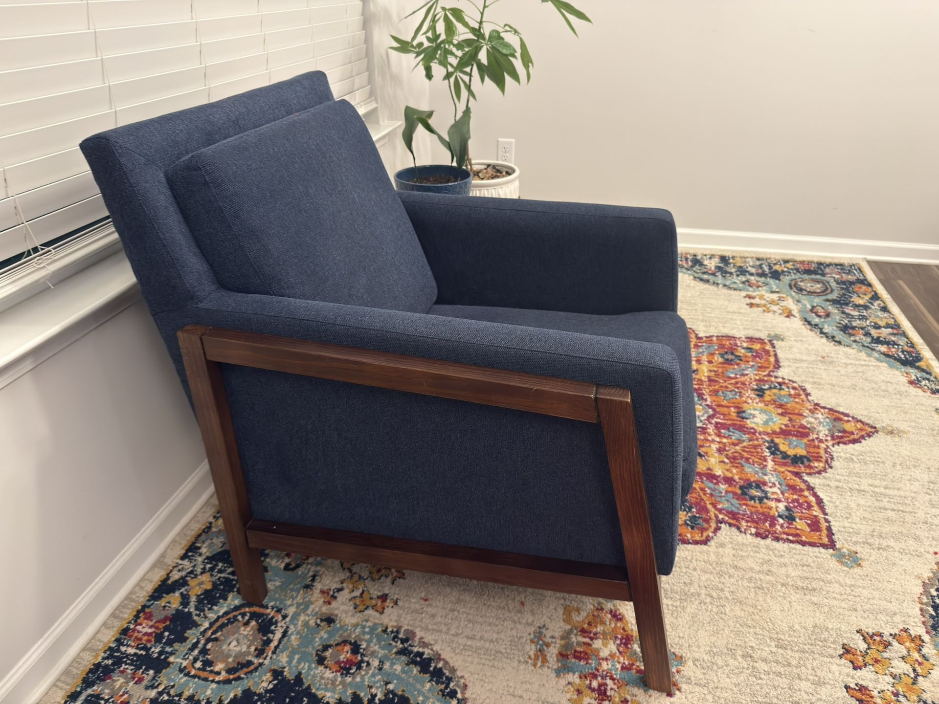 Selling single chair and coffee table. No scratches no damage. Furniture is lightly used and is in good condition. Coffee table - 47 inch x 30 inch x 17 inch