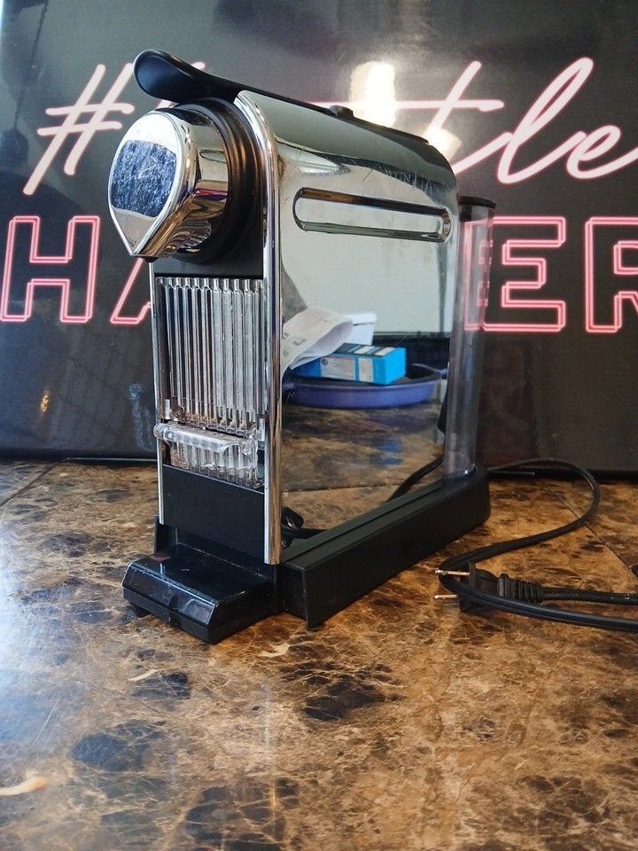 Nespresso Citiz C111 Chrome Espresso Machine Capsule Coffee Maker 1260W 120V Com The Nespresso Citiz C111 Chrome Espresso Machine is a stylish and powerful coffee maker designed for making one cup of espresso at a time. With a 1.2 qt water tank capacity and a 19 bar pressure system, this machine produces high-quality espresso coffee quickly. It features a matte silver finish with chrome accents, a compact design measuring 11 inches in height and 6 inches in width, and an auto shut-off function for safety. The Nespresso Citiz C111 is easy to use with its analog control panel and is compatible with Nespresso capsules for a convenient brewing experience. All proceeds go towards my cancer treatment and recovery thank you and God bless.