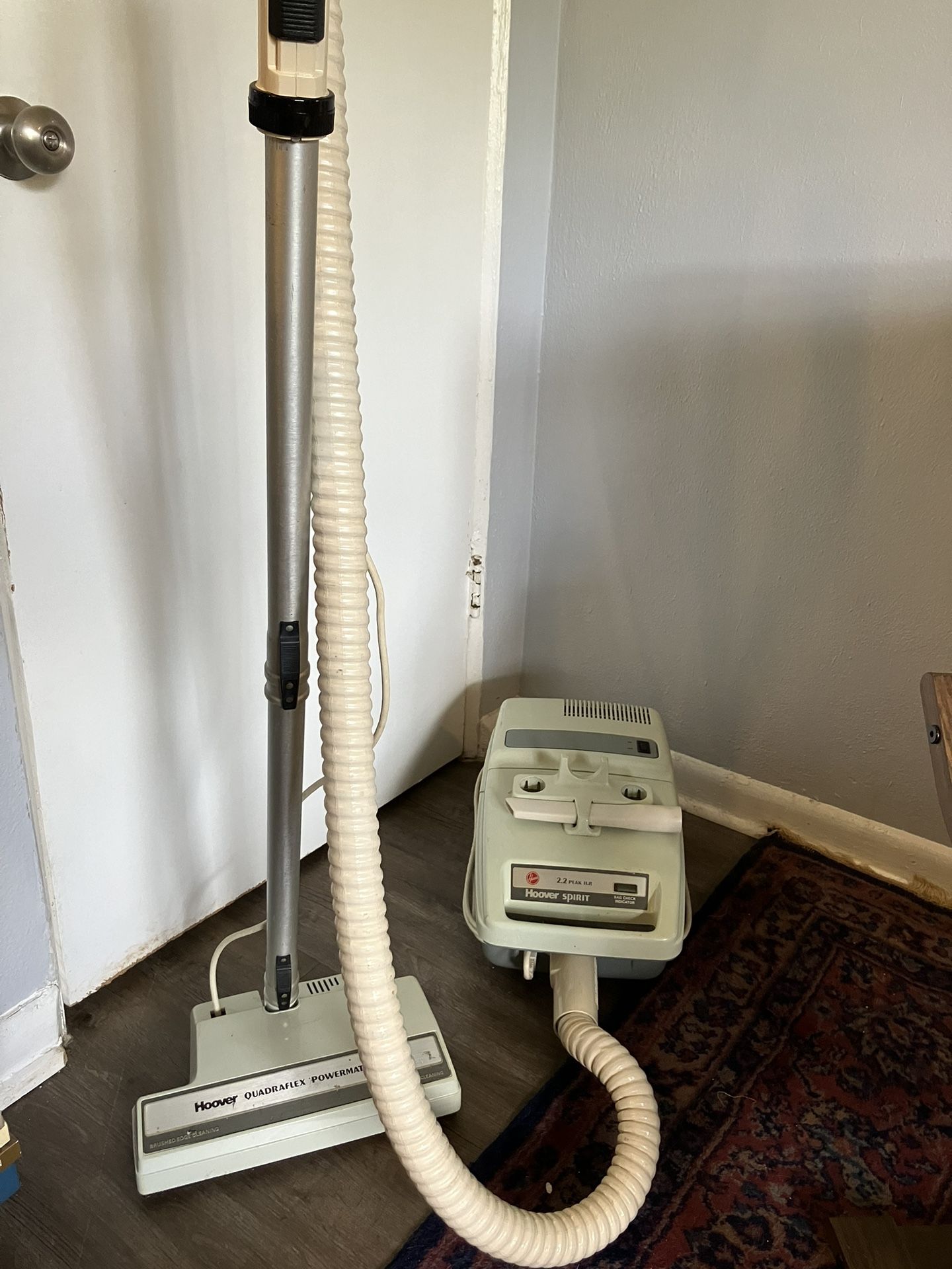 From about 1985, this Hoover is very solid and has great suction. Has also a Bag Indicator Light and Hoover Quadroflex Powerhead. Very good condition