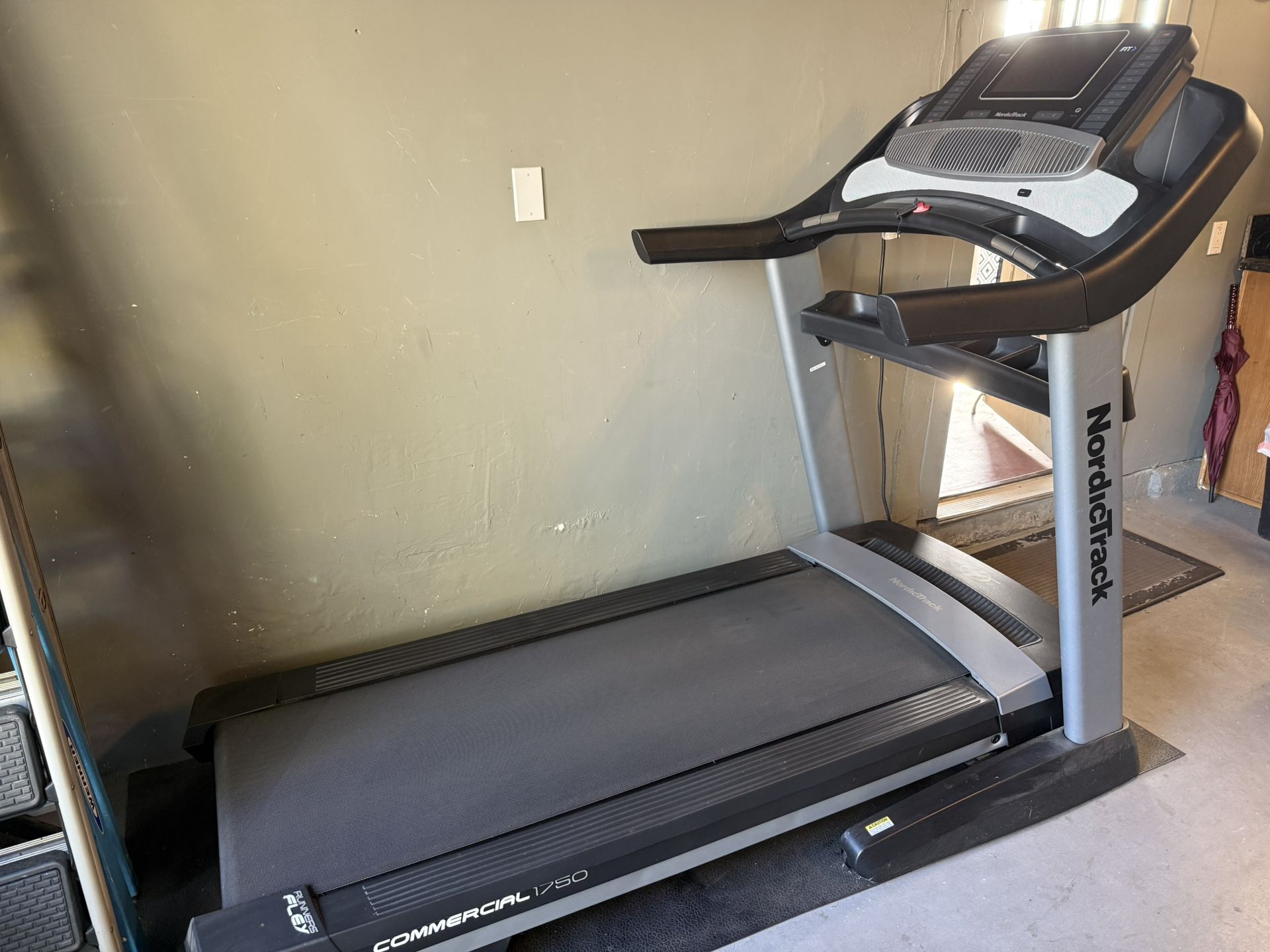 NordicTrack Commercial 1750 treadmill. Has iFIT compatibility, Bluetooth audio, incline/decline, and speed controls. Dual fans and includes floor matt. Folds up for easy storage. Pick up only. Used roughly around 20 times practically new and in great condition. This is unlike other treadmills that you’re seeing on this site. It is clean and well taken care of.