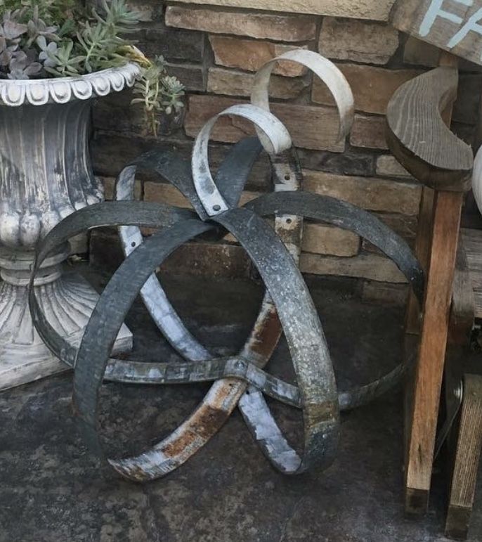 Hand made from rings off of Napa Valley wine barrels. A unique rustic fall decoration. And it folds flat for storage.