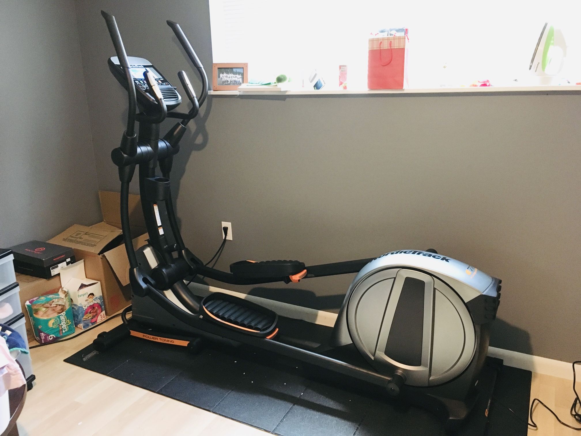 Also willing to trade for one of those walking/jogging flat treadmills that fit beneath a couch. Sale price OBO! Please make me an offer ☺️ Like new, barely used. Retails for about $1K so this is a fantastic deal! ——————— The NordicTrack E 7.7 elliptical gives you a complete workout without taking up too much space. Starting is simple with one-touch controls and a choice of professionally designed calorie and performance workout apps to achieve the specific results you're after. This elliptical features power adjustable incline, an iPod®-compatible music port; cooling AutoBreeze™ workout fan and the tracking and training options of iFit® technology. A power adjustable ramp angle changes your stride, working different muscle groups in the process. ——————— iFit Technology provides you with interactive training program (requires subscription) 24 workout apps Power Incline™ Ramp lets you customize your incline to suit your stride length 0-20° ramp range lets you target different muscles 20-pound effective inertia-enhanced flywheel for smoother ride 18" stride length Rear drive system 5" backlit display Cushioned and oversize pedals ensure a comfortable workout session Track your heart rate with the CardioGrip™ Elliptical arms let you work on your upper body Easy transport with built-in wheels Compatible with wireless chest straps Water bottle holder to keep you hydrated during workout sessions ——————— This Elliptical is in great condition, barely used. Buyer is responsible for all moving and transporting.