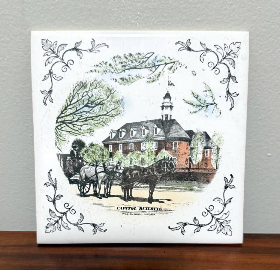 Vintage Capitol Building Williamsburg Virginia Collectible Decorative Ceramic Tile Trivet