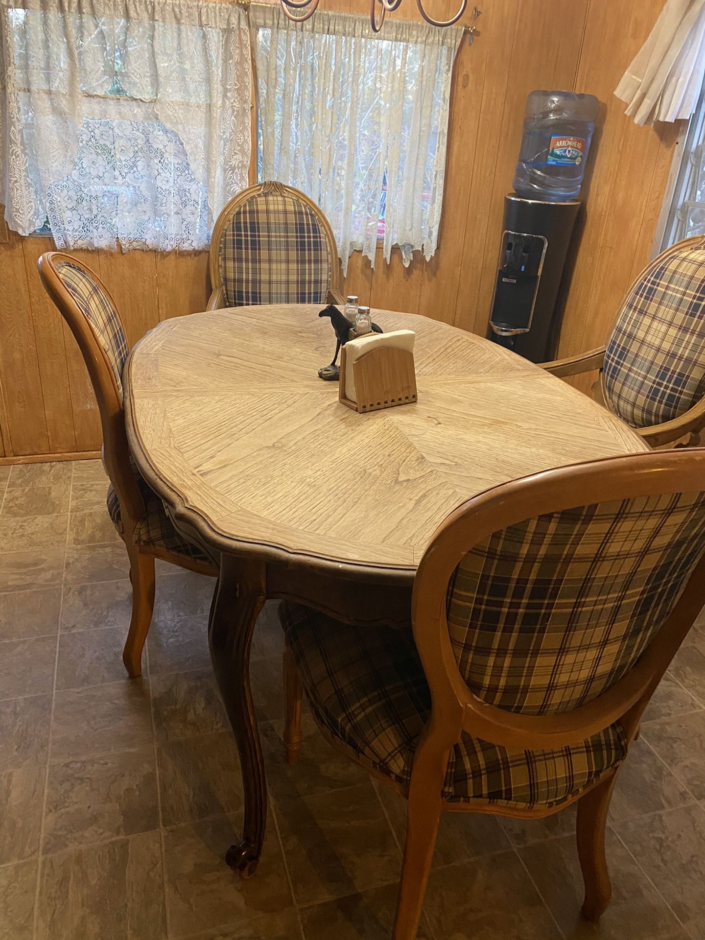 Used wooden table set. With 4 chairs. Only one chair has arm rests