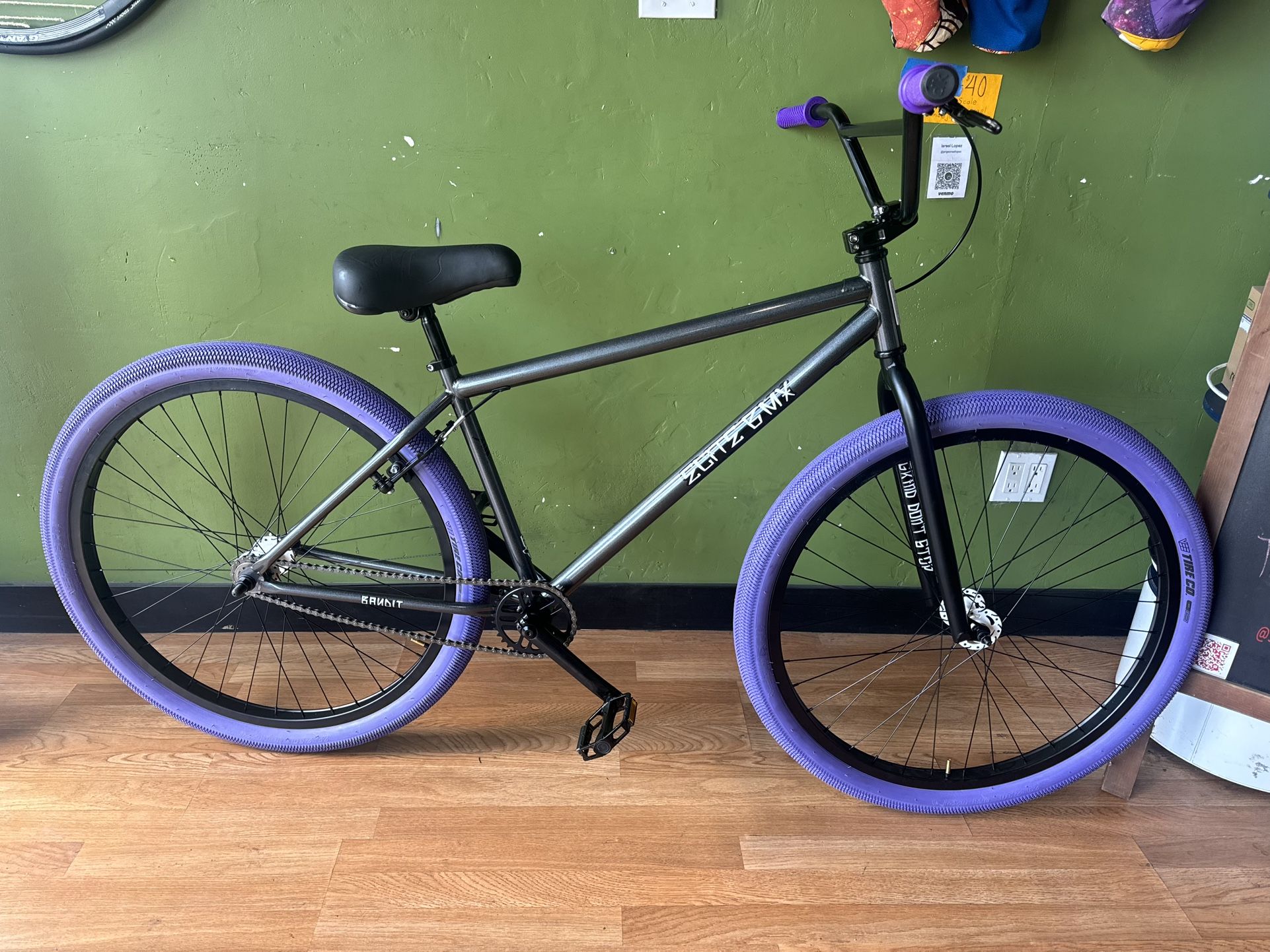 Grey and purple elite Bmx 29er Flip flip hub (fixie or freewheel) 425$ Come check this bike out at 4461 university ave. Stay True Cycleworks Throne elite Bmx