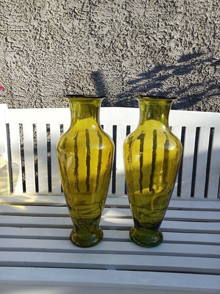 Green thick glass Vases. They are 22" Tall and 8" Wide on center