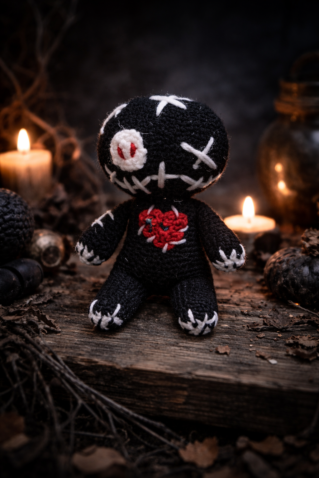 Corazón Negro Voodoo Doll – Handmade Crochet Plush (Custom Available)