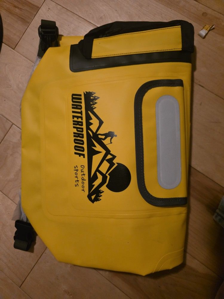 Brand new. Color yellow. Waterproof dry backpack. Dust and waterproof grade IP-68 20L. 500D Waterproof Guaranteed: IDRYBAG 20L dry bag backpack is carefully designed and meticulously constructed of 500D Vinyl-coated woven polyester with heavy duty welded and watertight seals, which has excellent performing on water resistance, tear resistance and abrasion resistance. The waterproof backpack dry bag is the perfect combination of premium quality, extreme durability, and maximum protection! Keeps your gear dry & safe...Amazing companion for outdoor enthusiasts! Easy to Use & Clean: Just load your gear into the dry backpack, grab the top woven tape and roll it down tightly 3-4 times, and then plug buckle to complete the seal. You may also guide the stretched strap over the zipped clip for a more compressed fit. It is waterproof either way! Quick and easy to use, the smooth durable surface of your dry sack backpack is easy to wipe clean after each use. Zippered & Protective Pockets: The front pocket of dry bag backpack allows to store small necessities and not have to dig into the main compartment. Beware this pocket isn't completely waterproof but rather splash-proof, do NOT put valuables like your phone. Idrybag 20L dry sack has a zipper pocket inside, which is good for keys, cash or anything you want added protection for. Foldable side pouch of the waterproof bag backpack is specially designed to hold water bottle for your quick access. More Carrying Ways & Safe: The waterproof dry bag backpack could be carried by handle or be carried as a backpack with included two shoulder straps. It would be a relaxing trip if you go hiking, camping, climbing, biking or water sports like floating, kayaking, swimming, rafting, boating, canoeing...Just take Idrybag dry bag and you are ready to go! Besides, we set the reflective strip on this dry backpack, which is highly visible at night when light touches.