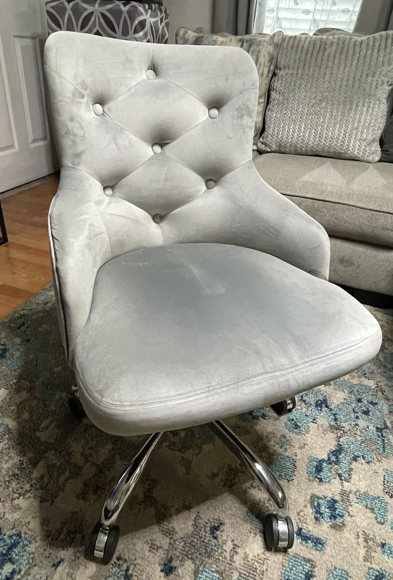 Gray velvet fabric desk chair with adjustable height and padded armrest in good conditions. I got 2 of them. Great for a makeup cabinet or just a modern desk chair. Asking $40 each firm. Serious inquiries only. Must pick near Mall of GA.
