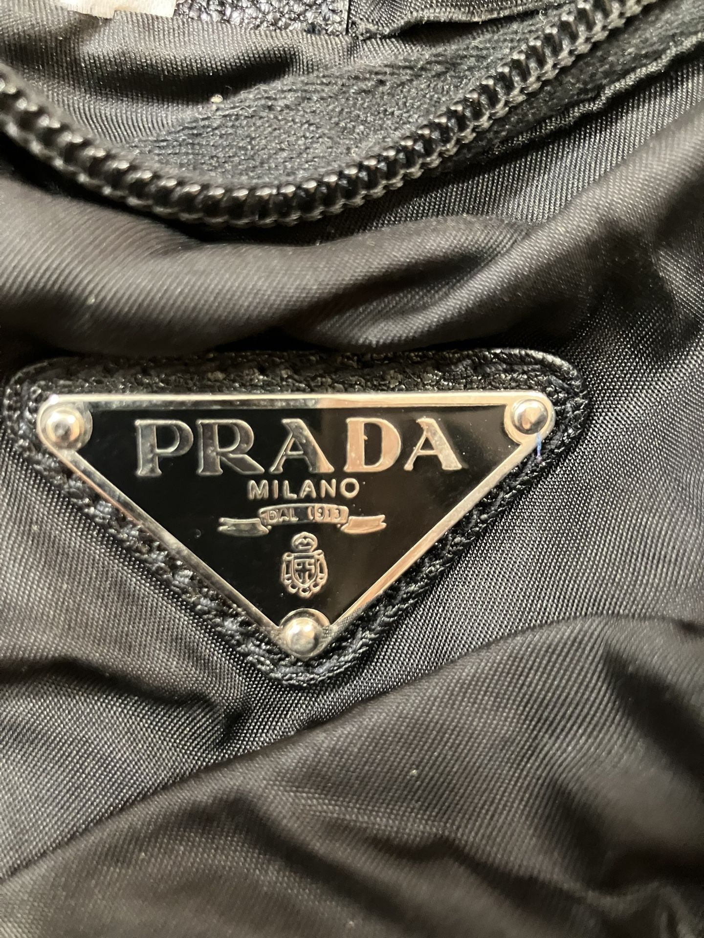 The Authentic Prada collapsible affordable zip up purse is a versatile and practical accessory for women. Made of durable nylon material with a solid black exterior, this medium-sized tote bag features a convenient zip closure and black leather handles. The interior is lined with black nylon, adding a touch of luxury to the overall design. Crafted in Italy, this stylish purse embodies the quality and sophistication associated with the Prada brand, making it a must-have for fashion-forward individuals looking for a chic and functional handbag option.