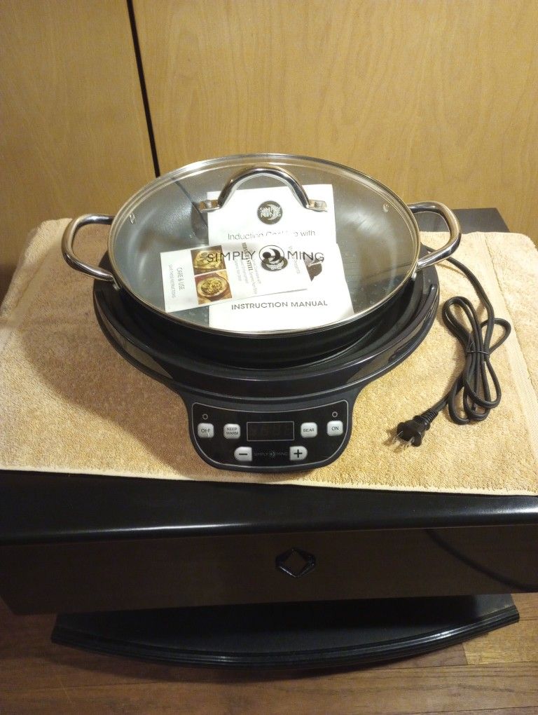Simply Ming 1500 watt induction cooktop with 12" grill pan. Model KF-1500. Like new condition.