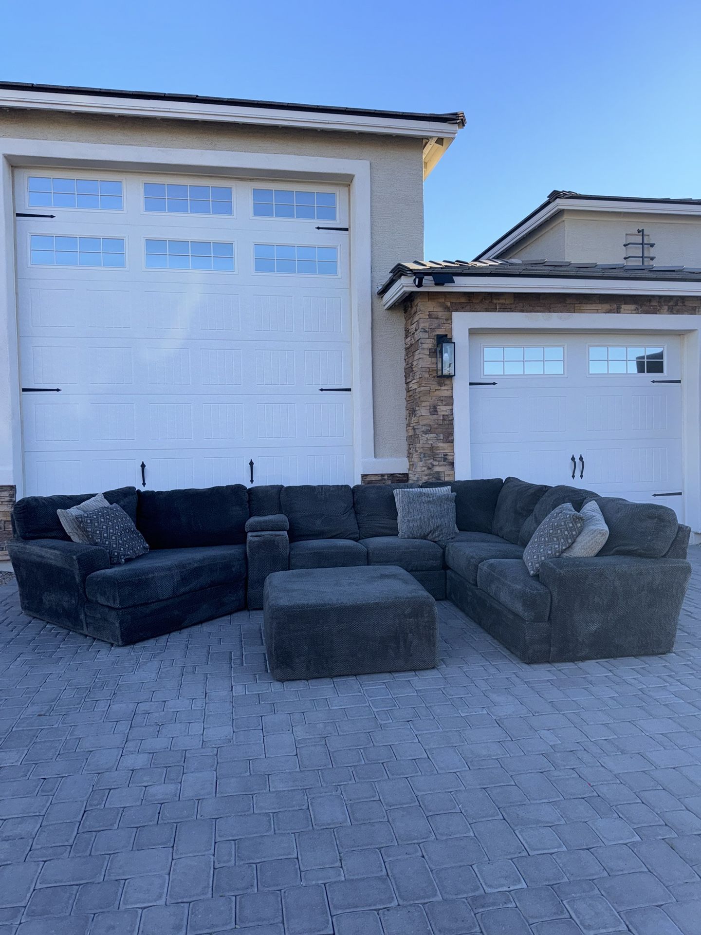 Grey mammoth sectional 4 piece & ottoman