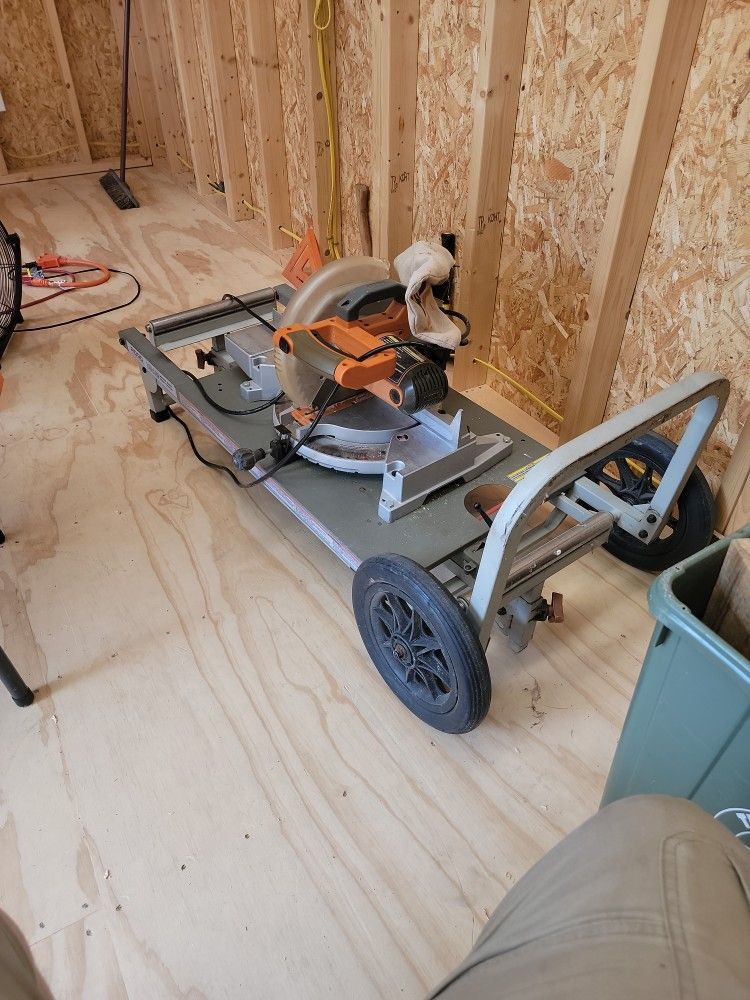 Rigid MS1065LZ Miter Saw on a Rigid MS-UV, used but not abused. Great for a workshop or onsite use.