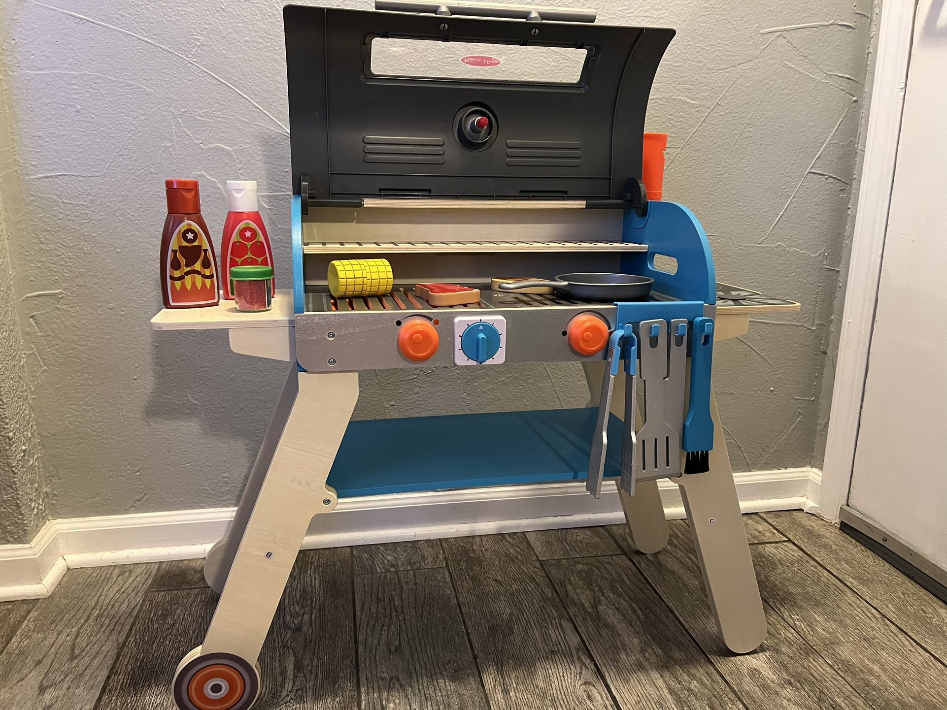 Melissa & Doug Deluxe Wooden BBQ Grill Smoker & Pizza Oven 62 Pieces Ages 3 And Up